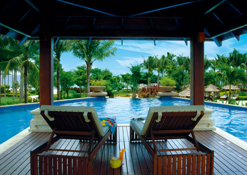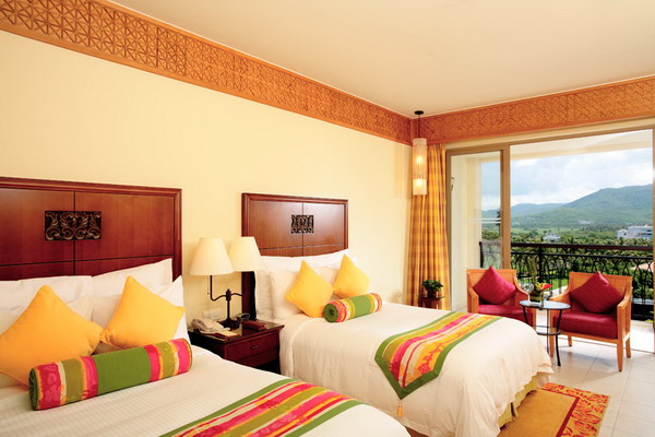 三亞萬豪度假酒店由世界知名公司Wilson & Associates設計。來自新加坡的設計師大膽自由的采用天然原石與暖色調木質材料,結合當地迷人的自然風景和質樸的風土人情襯托出其自然、時尚的獨特風格。酒店絕大部分客房均設有特大觀景陽臺,將潔白細軟的海灘、景色怡人的園林、優(yōu)美的山光水色、高爾夫球場景致一覽無遺?头績炔垦b修舒適溫馨,從房間設施到小物品擺設都將感受到三亞萬豪度假酒店用“心”之處。三亞萬豪度假酒店引以為傲的水療中心“泉”座落在一片寧靜的園林中。五座相對獨立的豪華水療閣,透過花園更能遠眺美麗的南中國海景。精心準備的療程項目包括美顏護理、身體理療、按摩護理和精選水療套裝,為您從內至外打造煥然一新的感覺。美酒佳肴在三亞萬豪度假酒店更是隨處可見。萬豪軒中餐廳傳統(tǒng)精篆的中式佳肴;全新江戶銀日餐廳舒適柔和的色彩與傳統(tǒng)的日式裝修風格相得益彰,寬敞的座位空間營造舒適的就餐環(huán)境。伴隨著優(yōu)雅的日式音樂,品嘗具有現代感的日式美食,開放獨立的特色專區(qū)為您展示日式美食的制作過程;萬豪咖啡廳豐富的中西零點菜單和美味的自助餐;海韻風情吧清涼飲料和迷人海景給予味覺和視覺無限享受。每間餐廳和酒吧都能滿足您挑剔的胃口。偏愛戶外的朋友也無需擔心,因為所有餐廳設有戶外雅座,讓您在享受美食的同時感受微微海風的輕拂。得天獨厚的自然環(huán)境,令人垂涎的美酒佳肴,多姿多彩的娛樂活動,加上完善的會議設施,三亞萬豪度假酒店迅速成為舉辦各種活動和商務會議的最佳場所。擁有11間會議室,總面積達1250平方米。無柱豪華宴會廳,可分隔成五部分,另外六間會議室滿足中小型商務會議需求。高素質的會議統(tǒng)籌隊伍,熱情悉心的宴會服務,為會議圓滿召開提供最佳保障。親臨亞龍灣領略“天下第一灣”真正魅力所在,親臨三亞萬豪度假酒店體驗夢寐以求的悠閑假期。