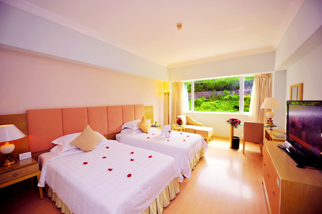 高級海景雙床房 面積:39平方米 樓層:2-8層 海景:50度 陽臺:無 雙標(biāo):1.2*2米 浴缸:大部分房間有 寬帶:免費(fèi)