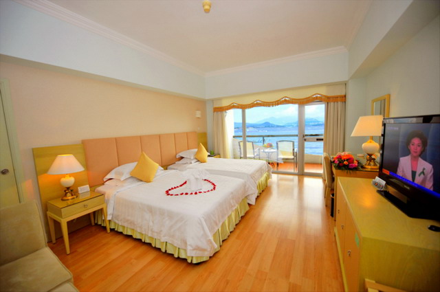 豪華海景雙床房 面積:39-45平方米 樓層:2-8層 海景:180度海景 陽臺:觀海陽臺 雙標(biāo):1.3*2米 浴缸:大部分房間有 寬帶:免費(fèi)