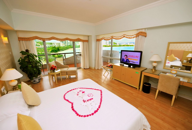 豪華海景大床房 面積:39-45 平方米 樓層:2-8層 海景:180度海景 陽臺:觀海陽臺 大床:1.8*2米 浴缸:大部分房間有 寬帶:免費(fèi)